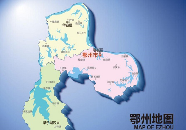 鄂州市位于湖北省東部,長江中游南岸。西鄰武漢,東接黃石,北望黃岡。鄂州居中獨厚,北距首都北京、東距上海、西距重慶、南距廣州均在1000公里左右。鄂州國土面積1594平方公里,地勢東南高,西北低,中間低平;最高點“四峰山”海拔485.8米,最低點梁子湖的“梁子湖”, 海拔11.7米。境內擁有大小湖泊133個,水域面積65萬畝,是著名的“百湖之市”、“魚米之鄉”。其中,全國十大名湖之一的梁子湖方圓300多平方公里... ,湖中有島,島中有湖。鄂州現轄鄂城區、華容區、梁子湖區、葛店經濟技術開發區、臨空經濟區。